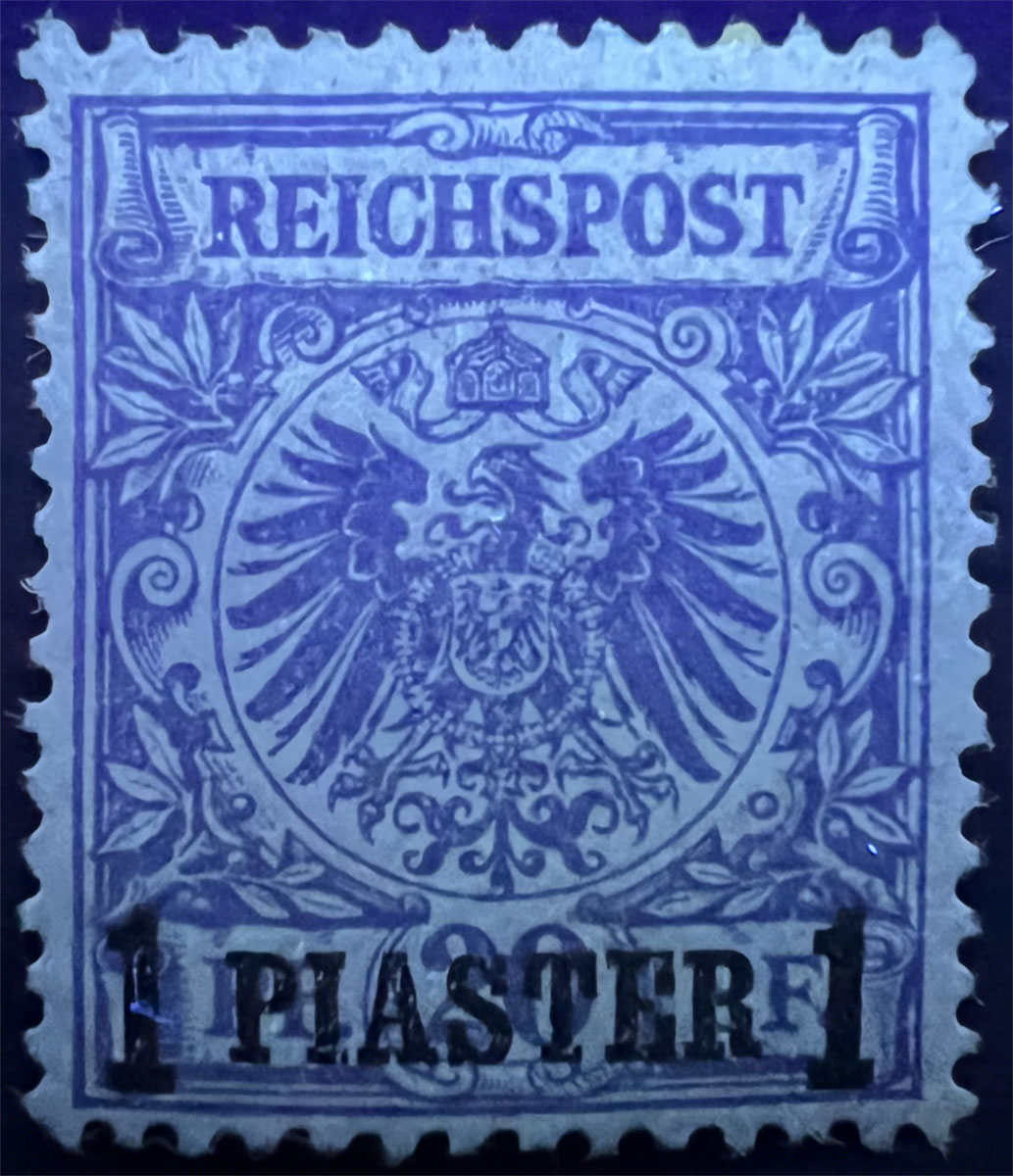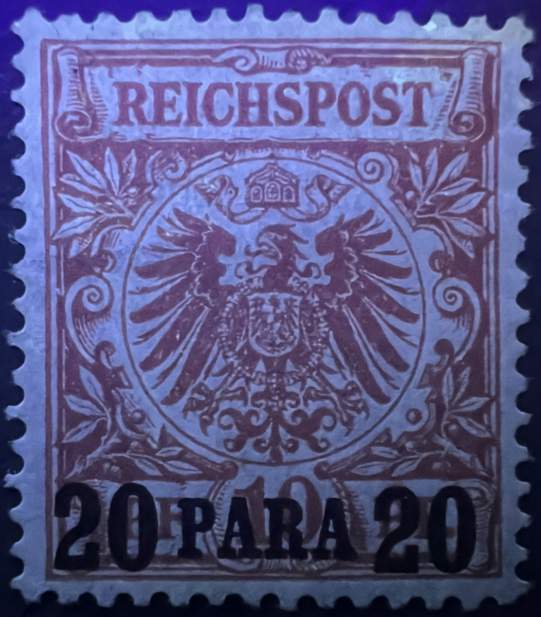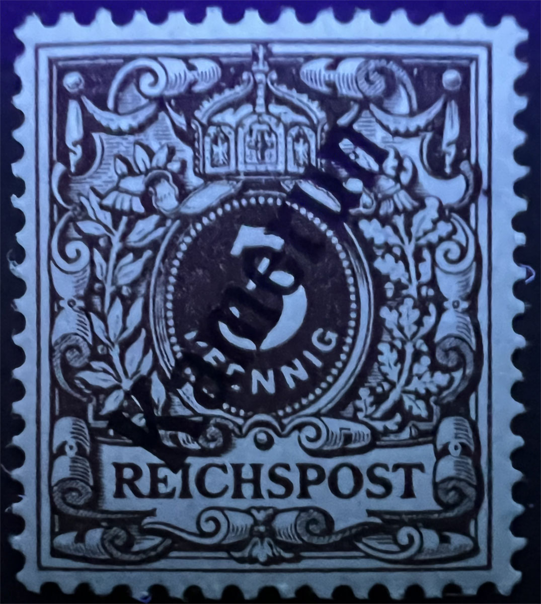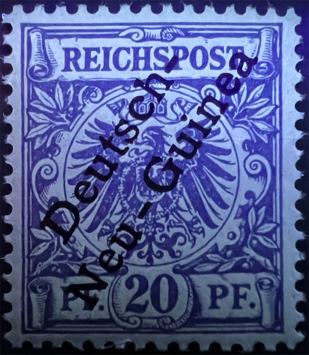 NOTE on UV COLORS: UV colors are included for those stamps that demonstrate a color change under shortwave (254 nm) ultraviolet light. For stamps that don’t demonstrate a notable color change, UV Color is listed as not applicable (“N/A”), but an image under UV light is included to aid in comparison with those stamps that do exhibit a Michel-listed color change. Images of the stamps under UV light aren’t of the same quality as the normal images because it’s difficult to get quality photographs under UV light and without the stamps being pressed flat by a scanner lid, but hopefully they are sufficient to aid in comparison.