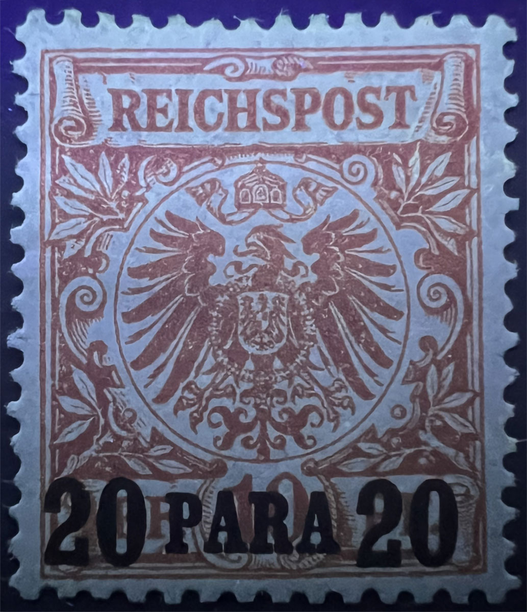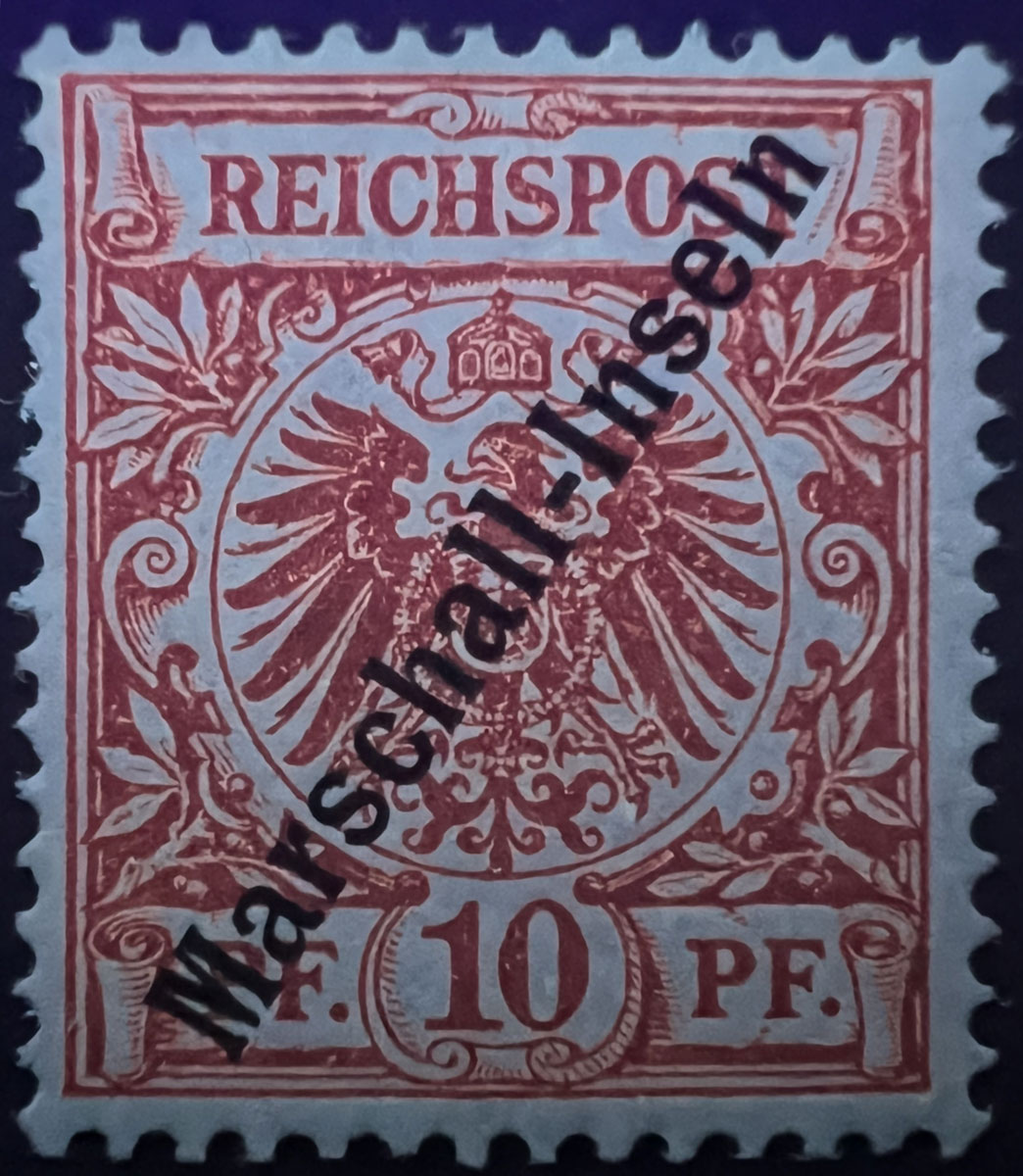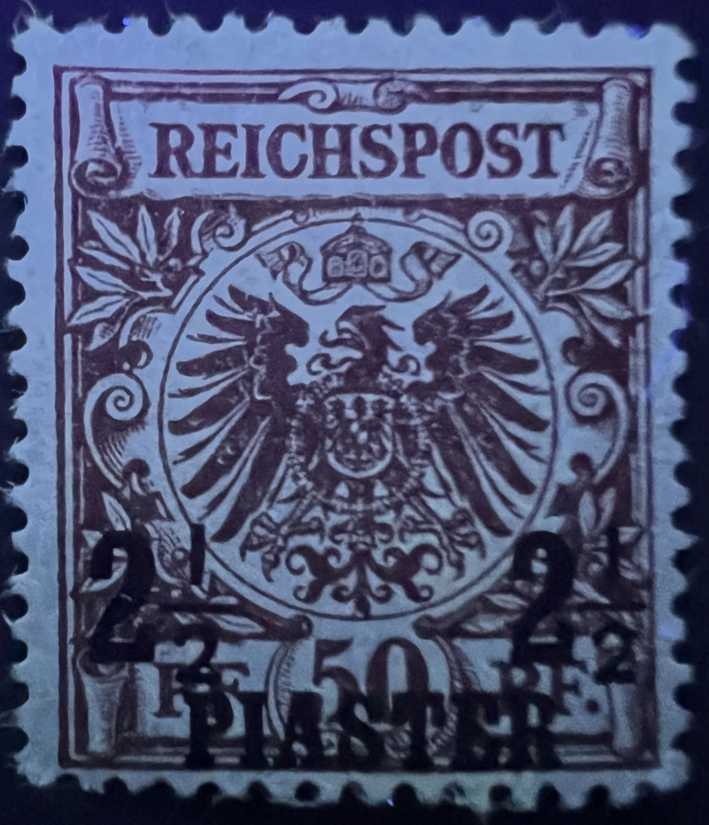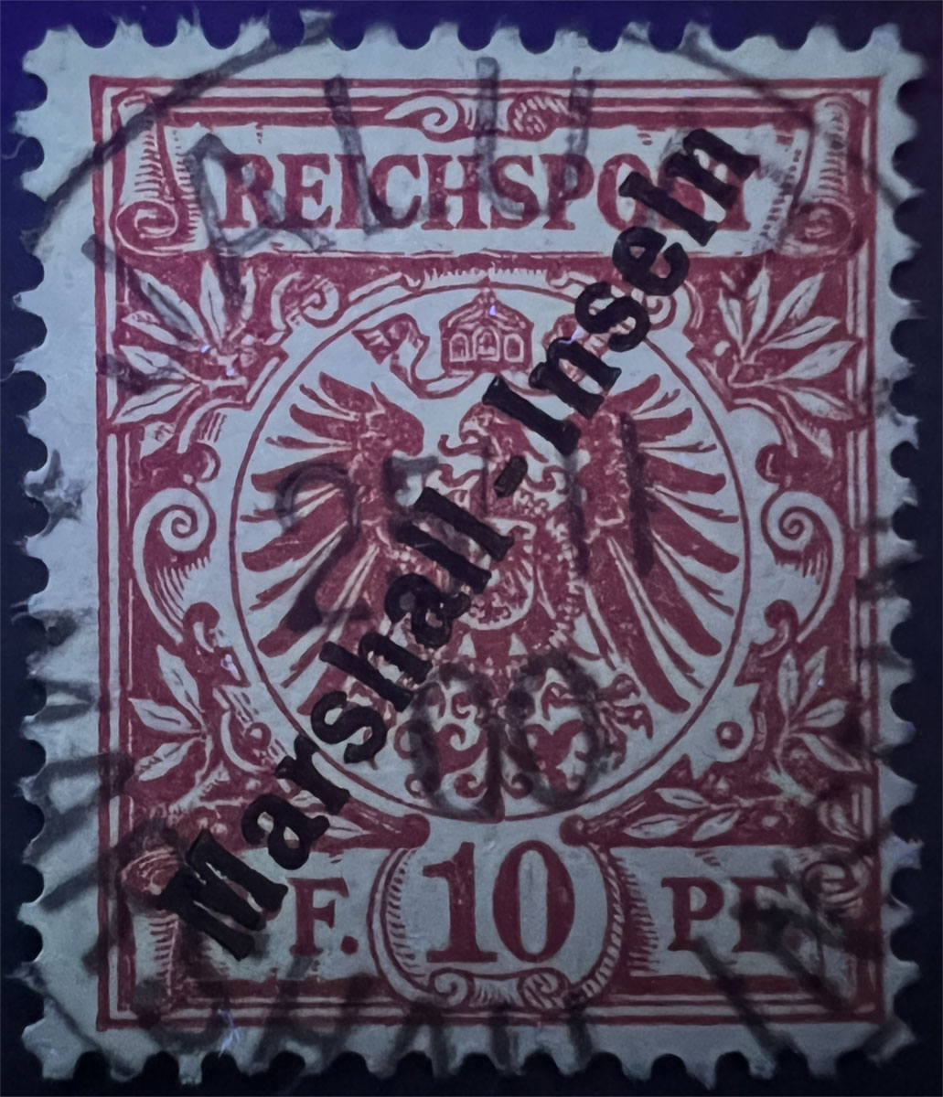NOTE on UV COLORS: UV colors are included for those stamps that demonstrate a color change under shortwave (254 nm) ultraviolet light. For stamps that don’t demonstrate a notable color change, UV Color is listed as not applicable (“N/A”), but an image under UV light is included to aid in comparison with those stamps that do exhibit a Michel-listed color change. Images of the stamps under UV light aren’t of the same quality as the normal images because it’s difficult to get quality photographs under UV light and without the stamps being pressed flat by a scanner lid, but hopefully they are sufficient to aid in comparison.