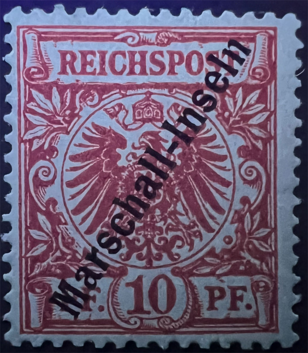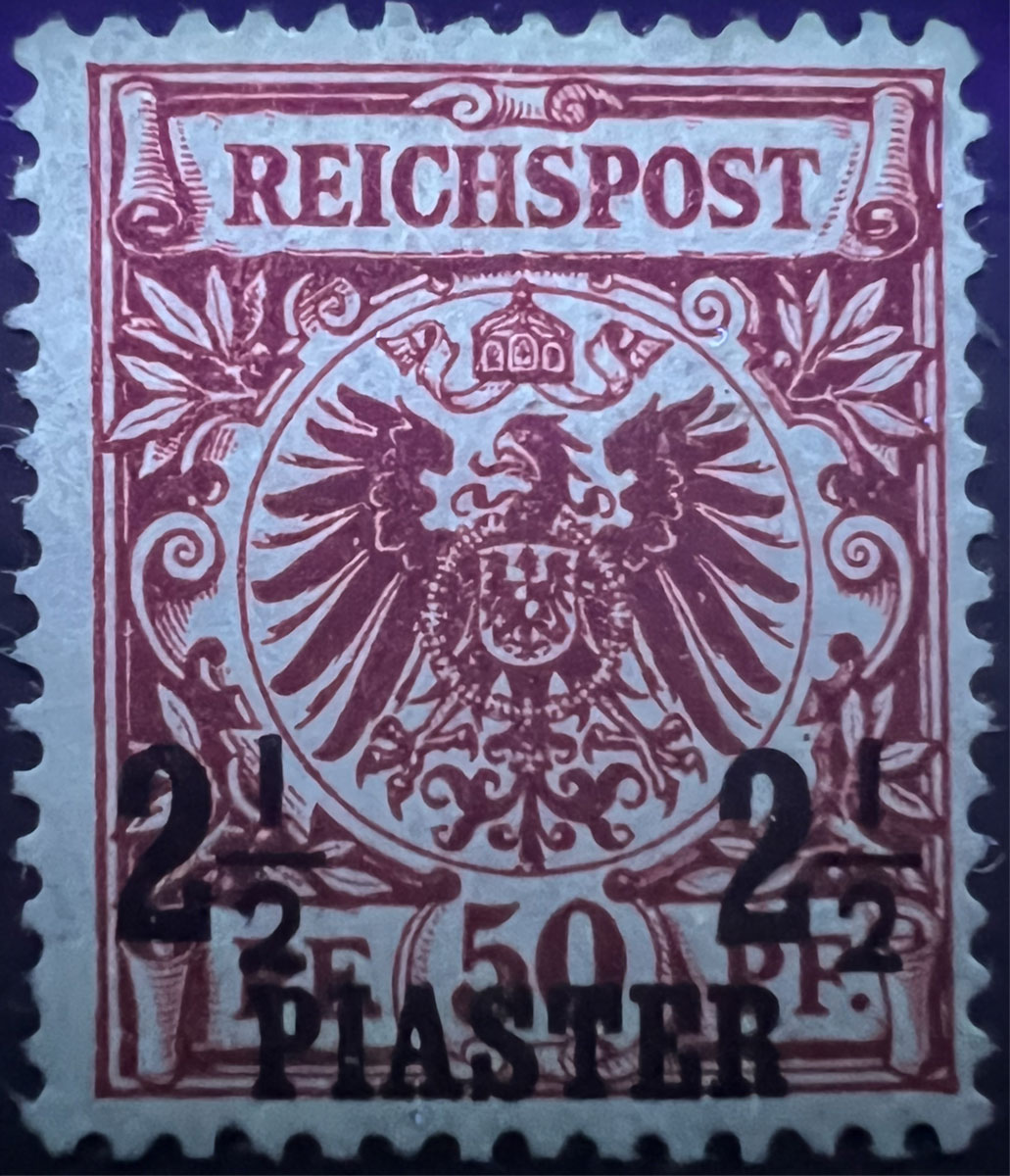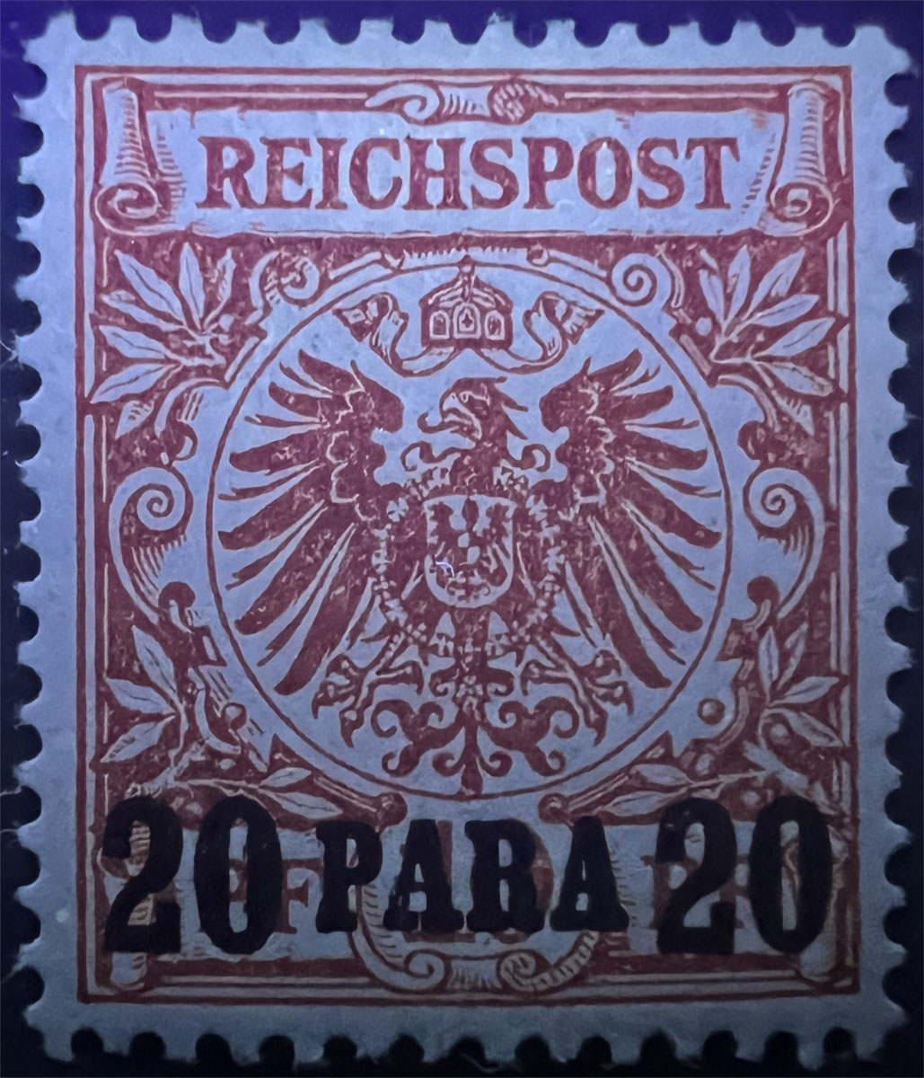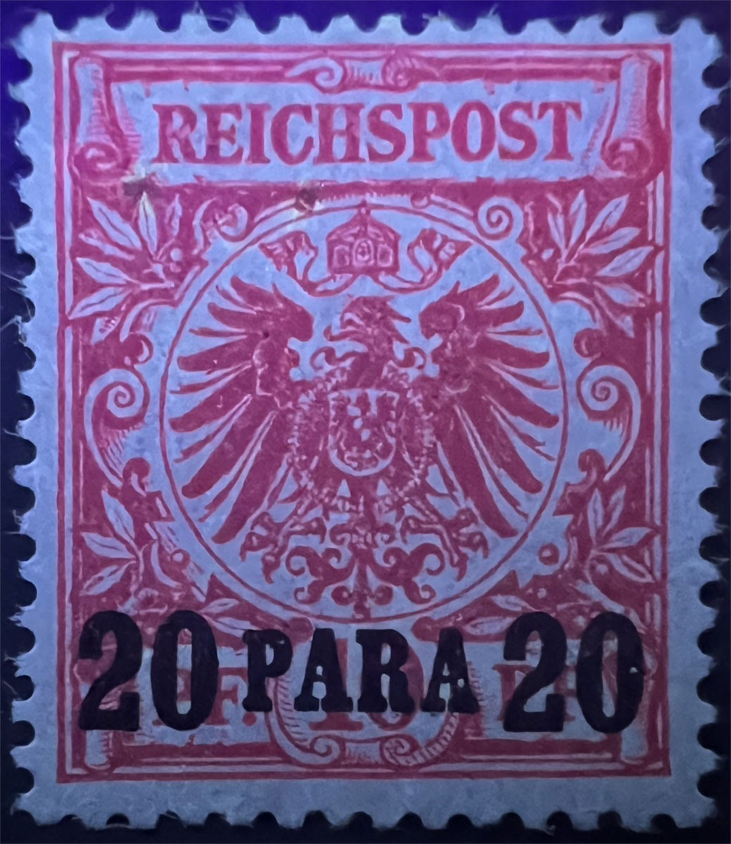 NOTE on UV COLORS: UV colors are included for those stamps that demonstrate a color change under shortwave (254 nm) ultraviolet light. For stamps that don’t demonstrate a notable color change, UV Color is listed as not applicable (“N/A”), but an image under UV light is included to aid in comparison with those stamps that do exhibit a Michel-listed color change. Images of the stamps under UV light aren’t of the same quality as the normal images because it’s difficult to get quality photographs under UV light and without the stamps being pressed flat by a scanner lid, but hopefully they are sufficient to aid in comparison.
